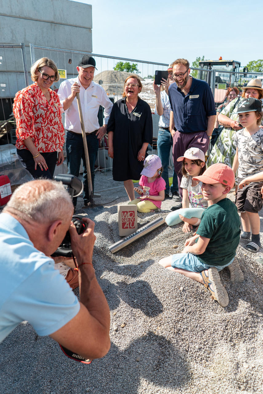 WOGENAU eG gründete sich 2019 mit dem Ziel, die Tradition der Augsburger Genossenschaften in ihrer sozialen Verantwortung weiter zu führen. „Wir wollen Teil einer Wohnungsbewegung sein“ war und ist die Motivation für neue Wohnkonzepte und nachhaltiges Bauen. Im Rahmen eines Konzeptvergabeverfahrens der Stadt Augsburg erhielt die junge Genossenschaft den Zuschlag für ein Grundstück im Sheridanpark im Augsburger Westen. Ende 2023 wurde der Vertrag zum Grundstückskauf unterschrieben und der Bauantrag eingereicht.